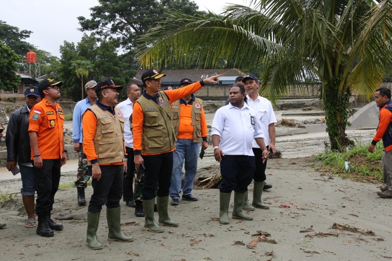 Kepala BNPB Doni Monardo memimpin langsung rapat kordinasi sekaligus evaluasi penanganan bencana banjir bandang Sentani di Jayapura. Didampingi Kepala Basarnas dan Wakil Gubernur Papua, Kepala BNPB menyampaikan langsung evaluasi tinjauan lapangannya hari ini. Kepala BNPB mengatakan hal yang terpenting saat ini adalah mengelola pengungsi dan jangan sampai ada yang mengeluh. “Kita akan memenuhi antara lain air bersih, MCK, selimut, dan matras” ucapnya. Logistik, makan dan bantuan-bantuan lainnya akan terus ditambah dari bantuan berbagai pihak. Unsur relawan, TNI dan Polri akan disiagakan disetiap titik pengungsian.” Anak-anak yang paling terpenting, jangan sampai ada yang sakit di pengungsian” tambahnya.