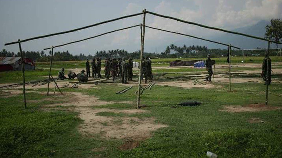 Salah satu dari bantuan yang diberikan adalah mendirikan tenda-tenda kelas darurat yang akan digunakan sebagai sarana belajar mengajar.