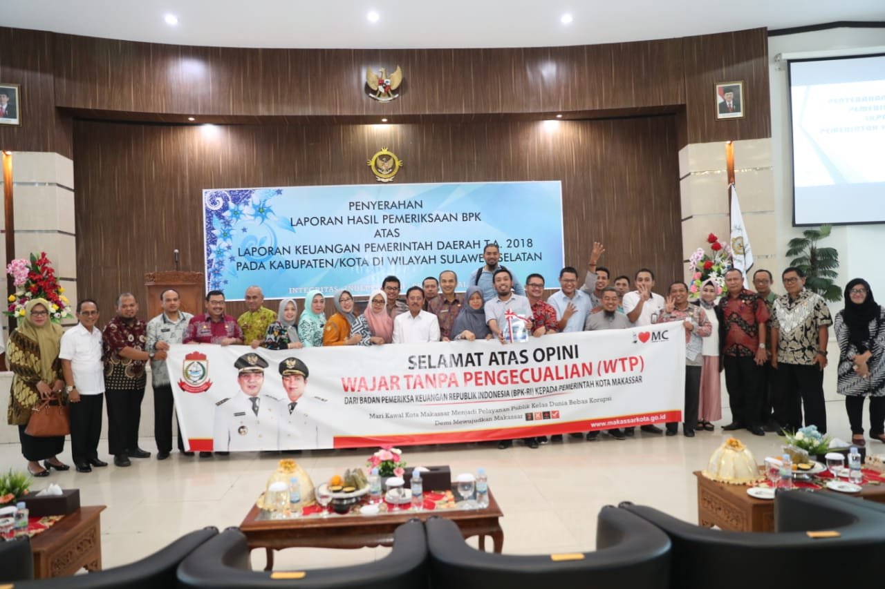 Makassar – Mampu menpertahankan pengelolaan keuangan daerah secara bersih dan transparant, Kota Makassar kembali meraih opini Wajar Tanpa Pengecualian (WTP) tahun 2018.