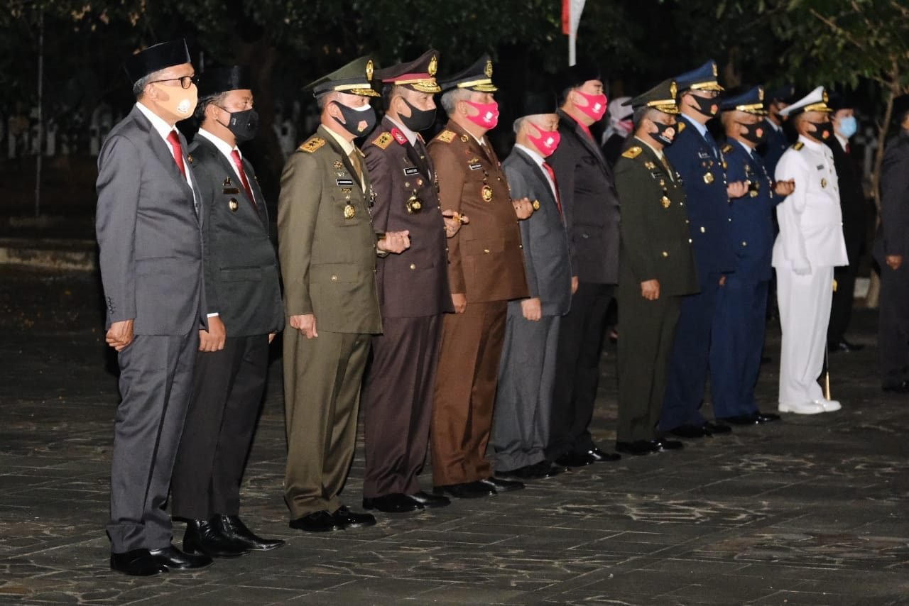 MAKASSAR – Rangkaian HUT RI Ke-75 Gubernur Sulsel, Nurdin Abdullah, menghadiri Apel Kehormatan dan Renungan Suci Proklamasi Kemerdekaan Republik Indonesia, di Taman Makam Pahlawan Makassar, Minggu malam, 16 Agustus 2020.