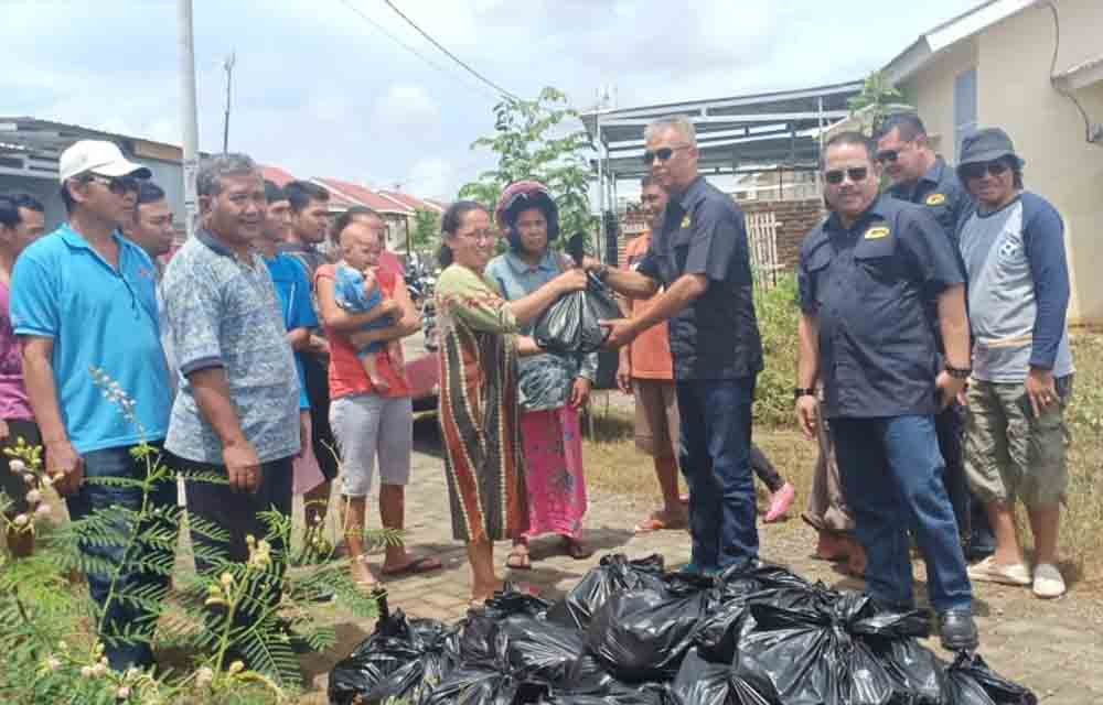 Sekretaris DPD APSI sulsel, Moh. Triyono bersama sejumlah anggota APSI Sulsel hadir langsung dalam penyerahan 50 kantong sombako yang langsung diserahkan ke warga terdampak banjir.