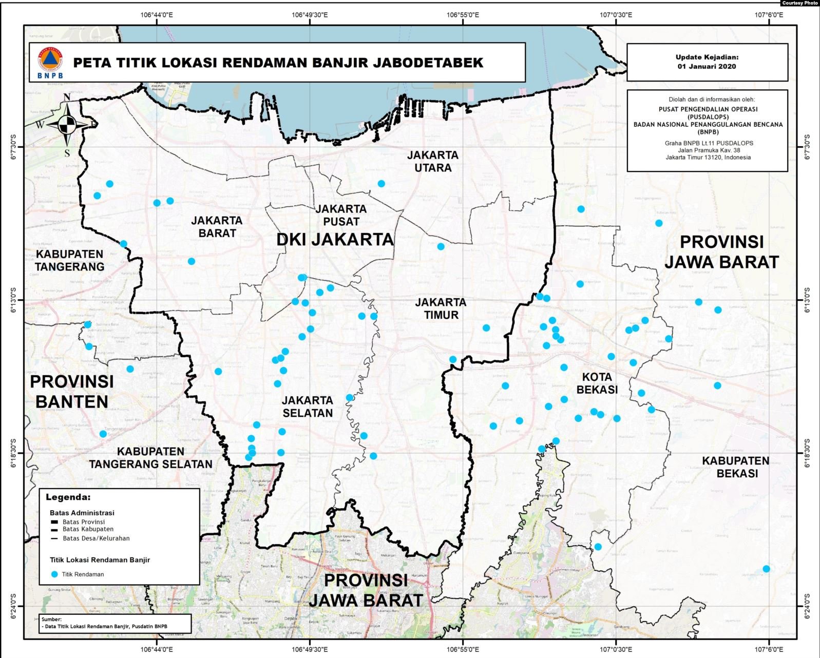 Peta Titik Lokasi Rendaman Banjir di Wilayah Jabodetabek (Courtesy: BNPB)