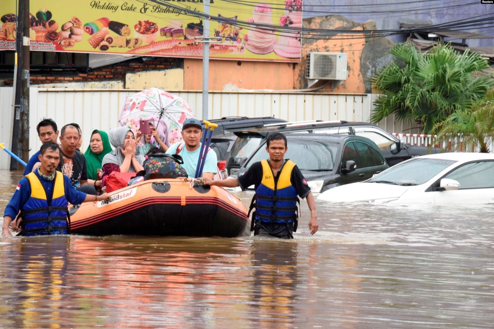 Foto-foto dan video yang beredar di media sosial menunjukkan mobil-mobil yang terendam, dan sebagian bahkan hanyut terbawa arus banjir. Sejumlah ular berukuran besar juga ditemukan warga di tengah-tengah arus banjir.
