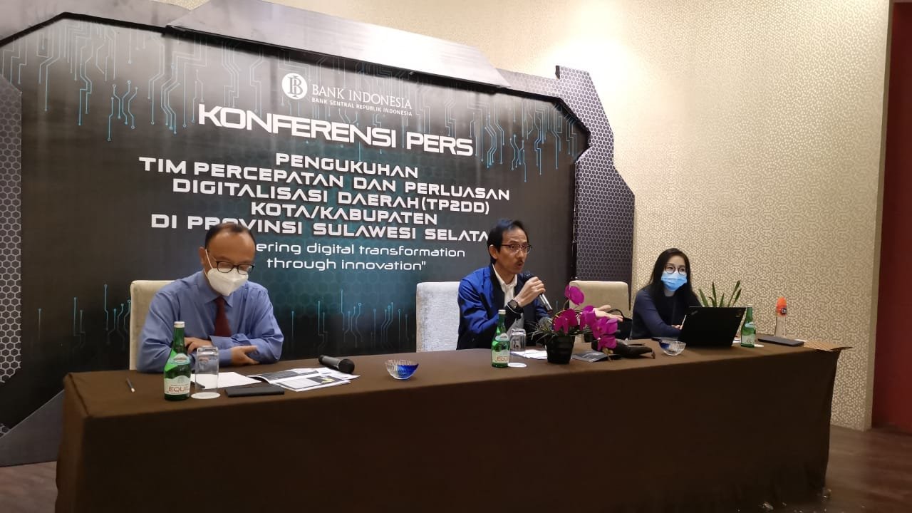 MAKASSAR – Bank Indonesia Kantor Wilayah Sulawesi Selatan akan mengukuhkan lima Tim Percepatan dan Perluasan Digitalisasi Daerah (TP2DD) Kota/Kabupaten di Sulawesi Selatan yaitu di daerah Makassar, Maros, Gowa, Barru, dan Parepare.