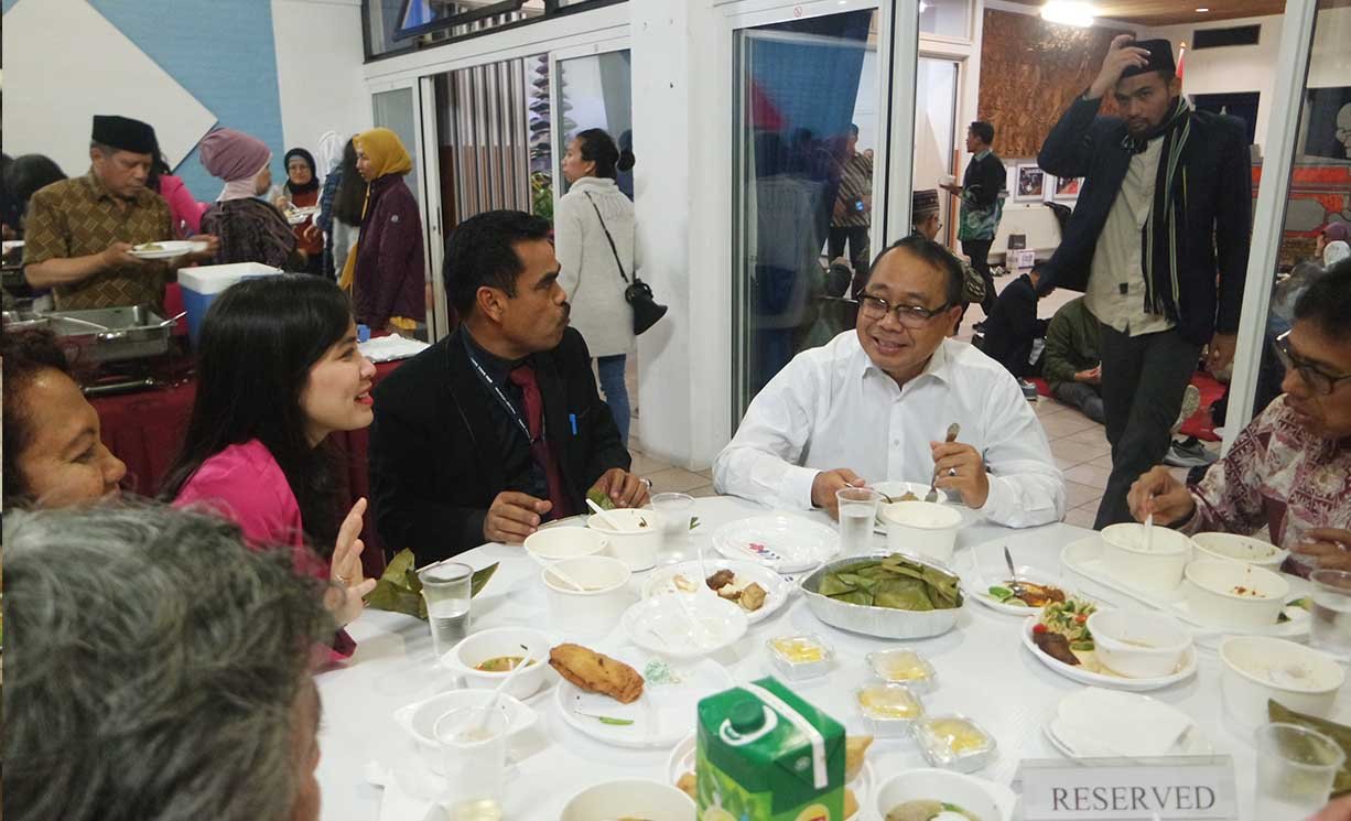DEN HAAG, BELANDA – Kedutaan Besar Republik Indonesia (KBRI) Belanda, Kamis, 27 Mei 2019, menggelar buka puasa bersama warga Indonesia di Belanda, di kantor KBRI Den Haag yang dihadiri ratusan warga negara Indonesia di negeri kincir Angin itu, dengan menyajikan sejumlah makanan khas nusantara, salah satu yang menarik perhatian yakni Coto Makassar dan Barongko.