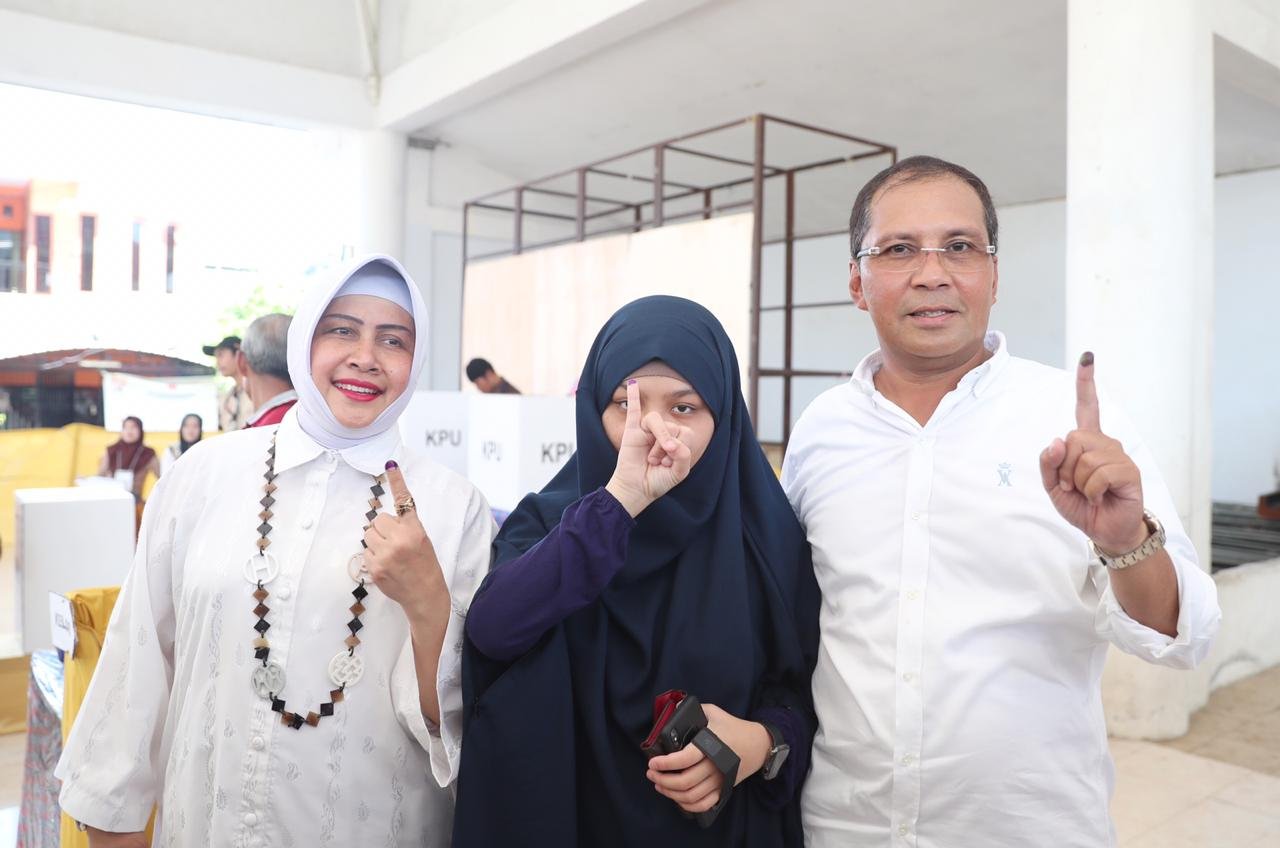 Makassar – Wali Kota Makassar – Moh. Ramdhan ‘Danny’ Pomanto bersama Istri Indira Jusuf Ismail, dan anak sulungnya Aura Aulia Imandara resmi menggunakan hak pilihnya di Pemilihan umum 2019.