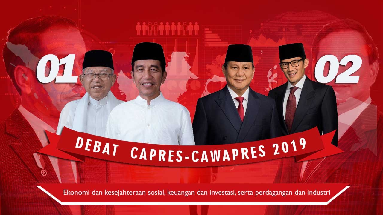 Debat capres terakhir akan mempertemukan kandidat capres-cawapres nomor urut 01 Joko Widodo-Ma’ruf Amin dan kandidat nomor urut 02 Prabowo Subianto-Sandiaga Uno.