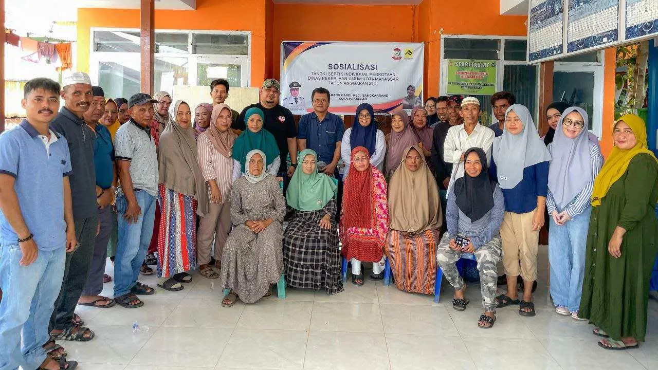 MAKASSAR—Kepala Bidang (Kabid) Sanitasi, Air Bersih Dinas Pekerjaan Umum (PU) Kota Makassar, Rahmi Indry, ST membuka acara Sosialisasi Tangki Septik Individual Perkotaan Tahun Anggaran 2024 di Kelurahaan Kodingareng, Kecamatan Sangkarrang, Minggu (28/04/2024).