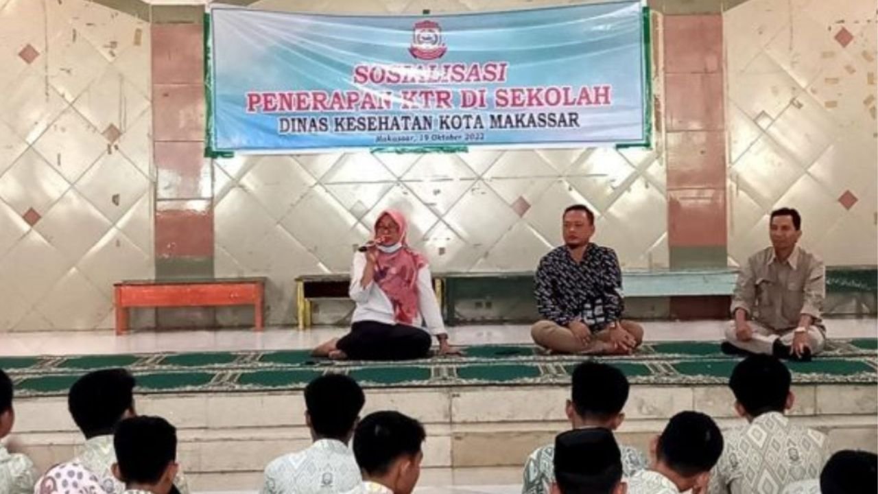 MAKASSAR—Dinas Kesehatan (Dinkes) Kota Makassar sosialisasi Perda Kawasan Tanpa Rokok (KTR) di sekolah IMMIM Putera, Jalan Perintis Kemerdekaan, Rabu (19/10/2022).