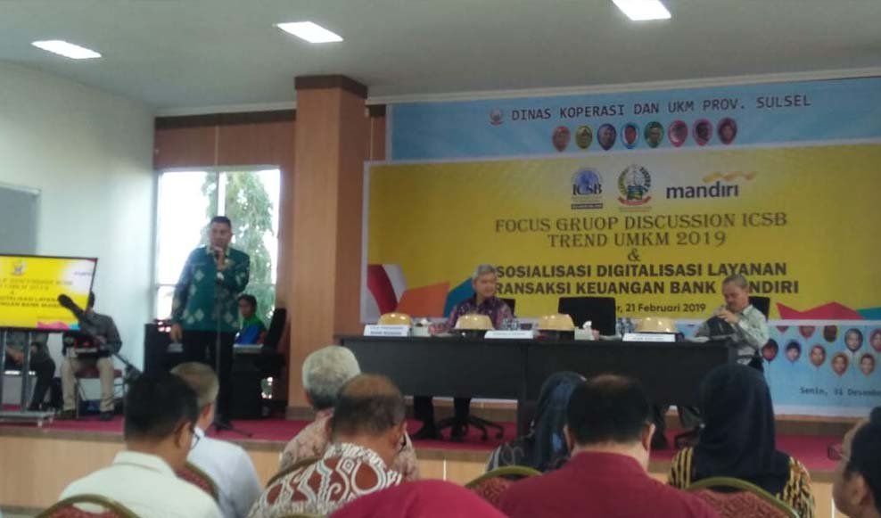 Bertempat di Aula Diskop UKM Sulsel,Jl.AP.Pettarani diadakan FGD Tren UMKM 2019 dan koordinasi pembentukan Korda ICSB,Kamis (21/2/2019). Kegiatan yang dirangkaikan sosialisasi layanan digital Bank Mandiri ini dihadiri Kepala Dinas yang membidangi Koperasi dan UKM Se-Sulsel.