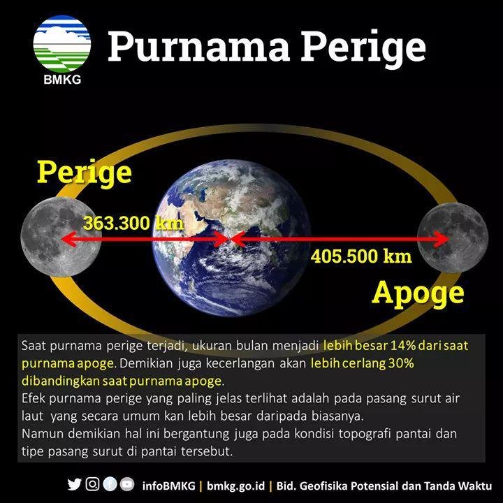 BMKG Bidang Geofisika Potensial dan Tanda Waktu menyebutkan, pada tiga bulan awal tahun 2019, peristiwa purnamanya akan bertepatan dengan Bulan berada pada posisi terdekatnya dari Bumi sehingga dikenal sebagai purnama perige atau purnama super (supermoon).