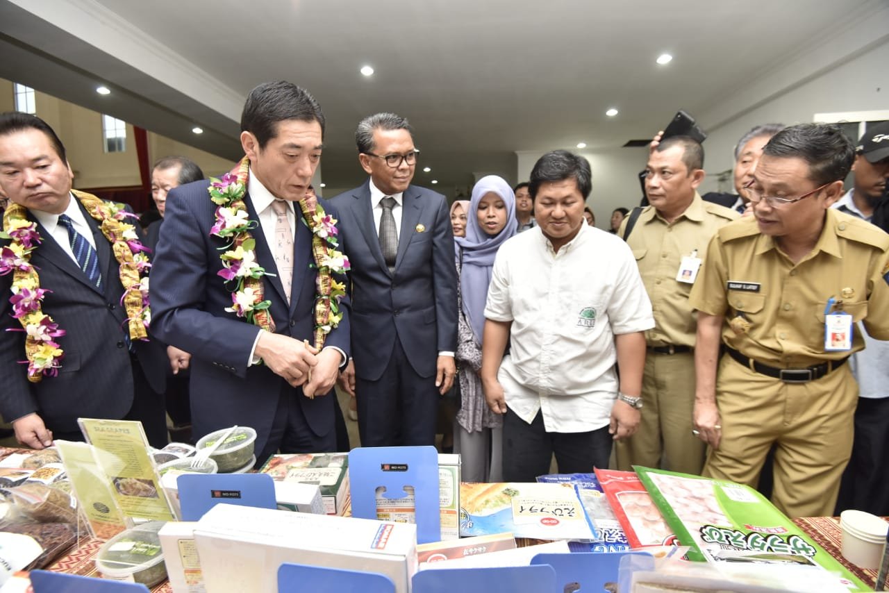 Gubernur Ehime Tokihiro Nakamura sangat antusias dengan produk yang ditampilkan bahkan mencicipi beberapa diantaranya. Termasuk hasil olahan kelautan dan perikanan. Sajian ini juga diberikan di meja makan mereka.