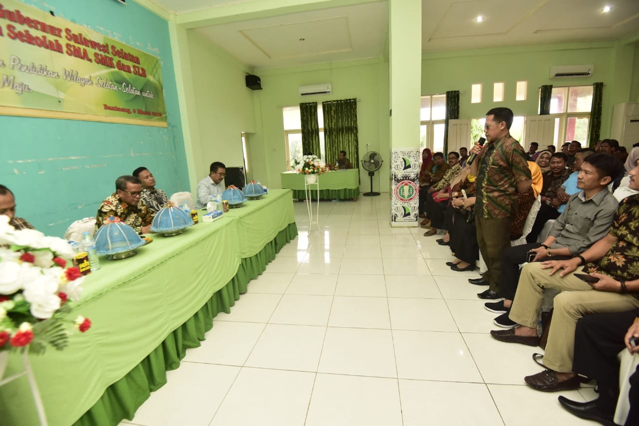 Pada kesempatan ini, gubernur mendengarkan dan mencari tahu apa yang menjadi persoalan para kepala sekolah. “Ini kita ingin melihat bahwa gairah pendidikan ini harus kita tingkatkan, kepala sekolah-sekolah ini harus diberikan mood yang baik, jangan diberikan beban yang berat,” kata Nurdin Abdullah.