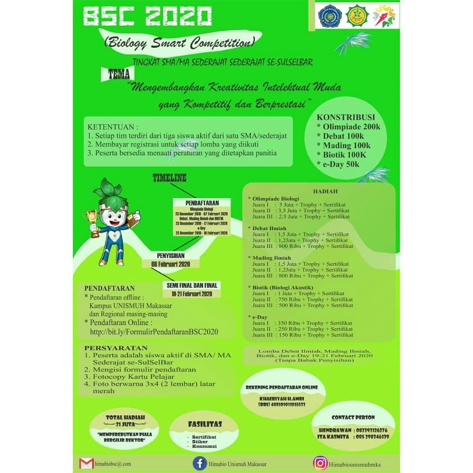 MAKASSAR – Himpunan Mahasiswa Boilogi (HIMABIO) Unismuh Makassar, kembali menggelar event tahunan ke tiga yaitu Biology Smart Competiton (BSC).