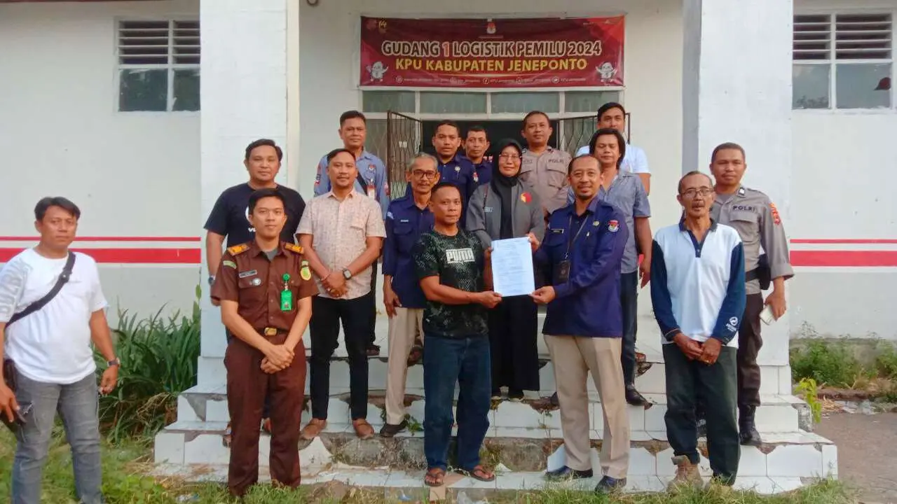 Logistik pemilu diterima Sekretaris KPU Jeneponto, Anzar Hasanuddin dan jajarannya, disaksikan Bawaslu, TNI-POLRI dan Kejaksaan.