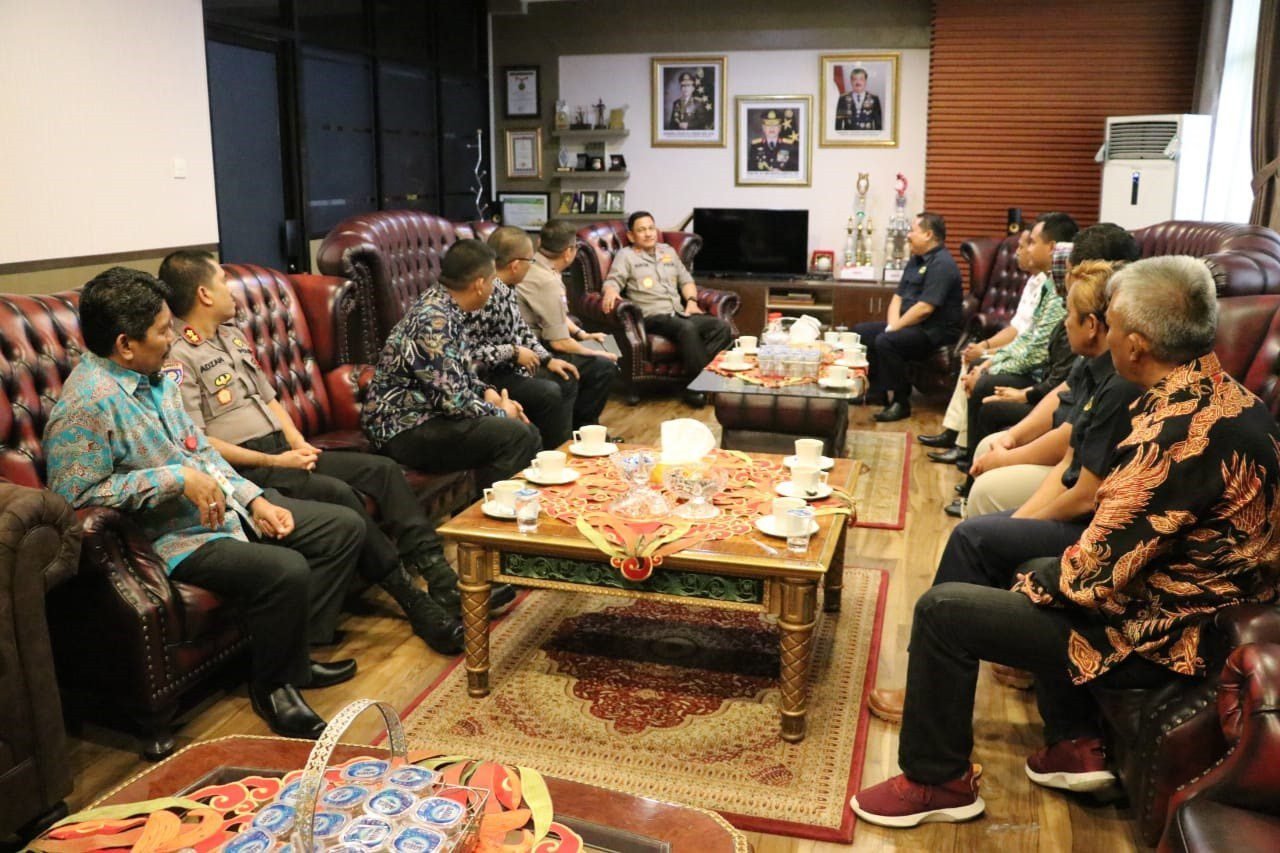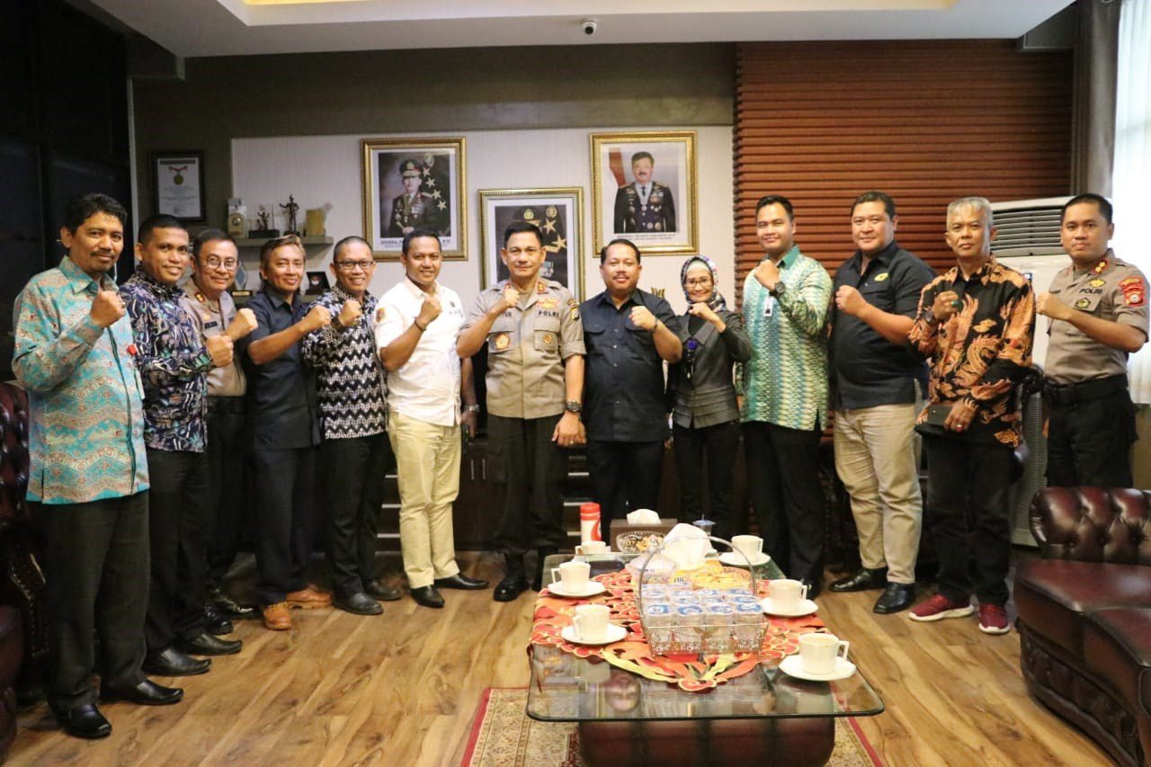 MAKASSAR – Panitia HUT Satpam ke-39 tingkat Polda Sulsel dipimpin Sekretaris Umum, Asosiasi Profesi Satpam Indonesia (APSI) Sulsel, Moh. Triyono, menghadap Kapolda Sulsel Irjen Pol. Mas Guntir Laupe, di Mapolda Sulsel, Kamis (9/1/2020).