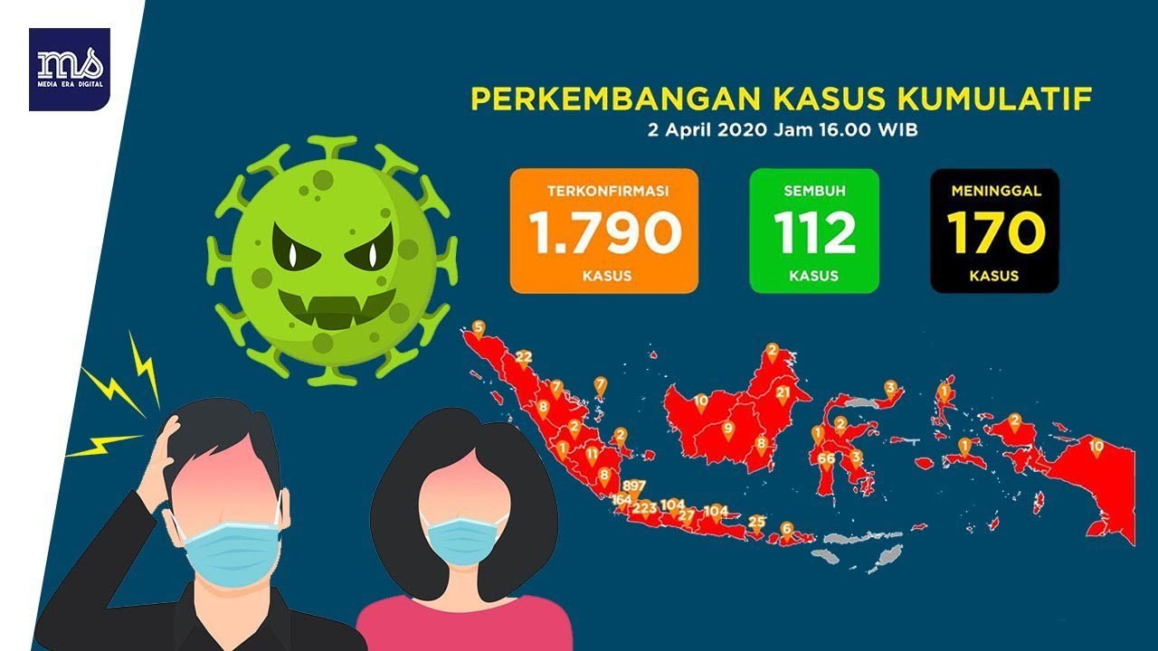 JAKARTA – Gugus Tugas Percepatan Penanganan Covid-19 mencatat jumlah pasien Covid-19 yang sembuh di Indonesia terus bertambah mencapai 112 orang, sedangkan kasus positif menjadi 1.790 orang sementara meninggal 170 orang hingga Kamis pukul 12.00 WIB.