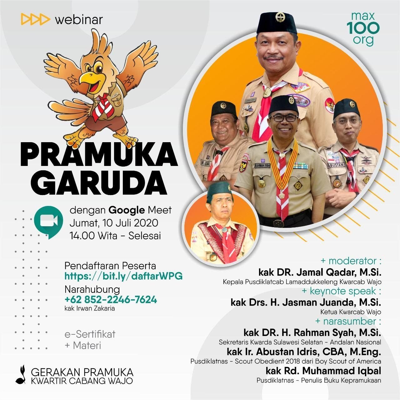 WAJO – Gerakan Pramuka Kwartir Cabang Wajo menggelar kegiatan Web-Seminar (Webinar) Kepramukaan yang berlangsung pada Jumat (10/7/2020). Dengan tema Webinar yakni “Pramuka Garuda” dan dilaksanakan melalui Aplikagi Google Meeting.