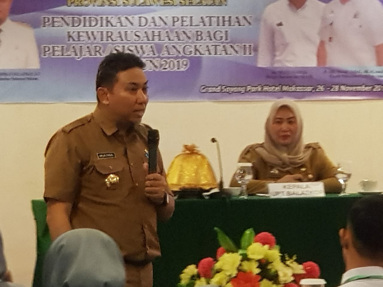 MAKASSAR – Kepala Dinas Koperasi dan UKM Sulsel,Abd Malik Faisal membuka kegiatan pendidikan dan pelatihan kewirausahaan bagi pelajar untuk angkatan ll tahun 2019.