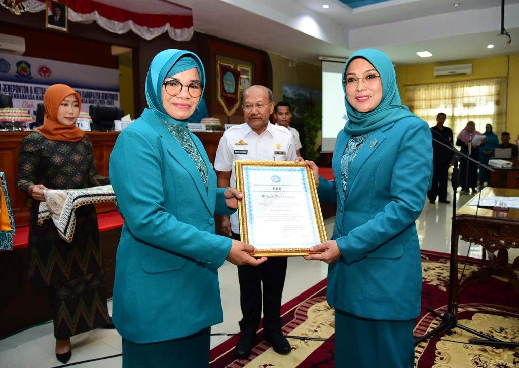 Jeneponto – Ketua Tim Penggerak PKK Provinsi Sulsel Liestiaty F. Nurdin melantik Hj. Hamsiah Iskandar sebagai ketua TP PKK dan Dekranasda Kabupaten Jeneponto untuk periode ke-2. Pelantikan ini disaksikan langsung Bupati Jeneponto Iksan Iskandar di Ruang Pola Kantor Bupati Jeneponto, Rabu (6/3).