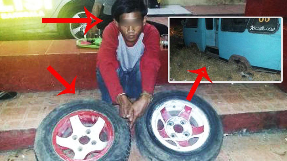 “Saat itu, pelaku berhasil membawa kabur dua ban mobil pete-pete merk Mitsubhsi beserta velg yang terparkir di depan rumah korban,” terang Diaritz.