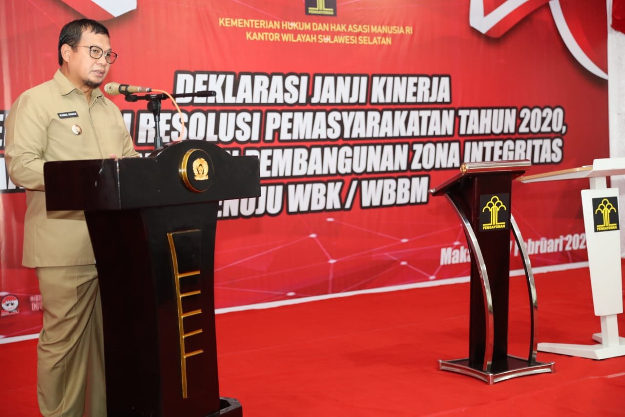 Deklarasi janji kinerja dan resolusi permasyarakatan tahun 2020 ini di awali dengan sambutan Kalapas I Makassar yang mengharapkan adanya komitmen bersama untuk mengimplementasikan kawasan bebas korupsi.