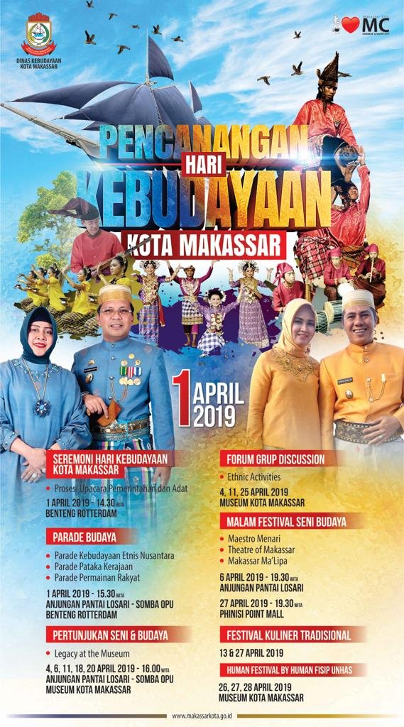 MAKASSAR – Pemerintah Kota Makassar menetapkan hari kebudayaan Kota Makassar setiap tanggal 1 April.