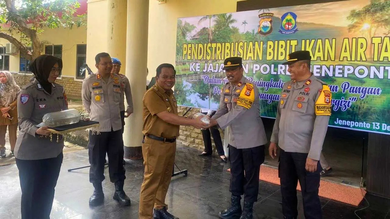 “Kami sangat berterima kasih kepada Bupati Jeneponto dan jajarannya atas dukungan ini. Bantuan bibit ikan air tawar ini tidak hanya mendukung ketahanan pangan, tetapi juga mempererat sinergi antara kepolisian dan masyarakat,” ujar AKBP Widi Setiawan.