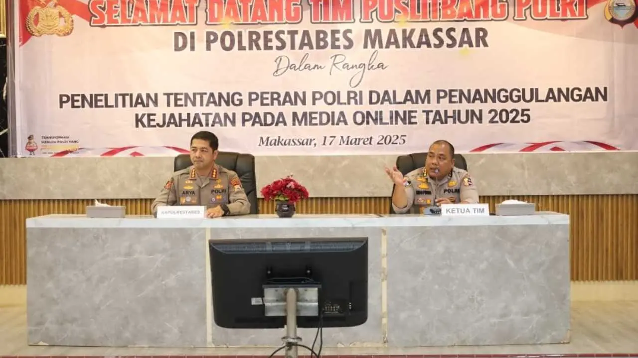MAKASSAR—Polrestabes Makassar menerima kunjungan dari Tim Pusat Penelitian dan Pengembangan (Puslitbang) Polri dalam rangka penelitian terkait kejahatan di media online.