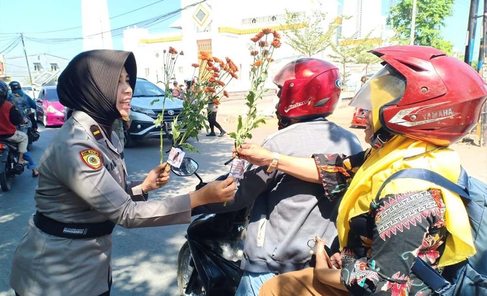 GOWA – Sebagai ungkapan turut berduka cita, pada hari Kamis (12/09), Polwan Polres Gowa membagikan bunga duka ke pengendara atas wafatnya Presiden ke-3 BJ Habibie.