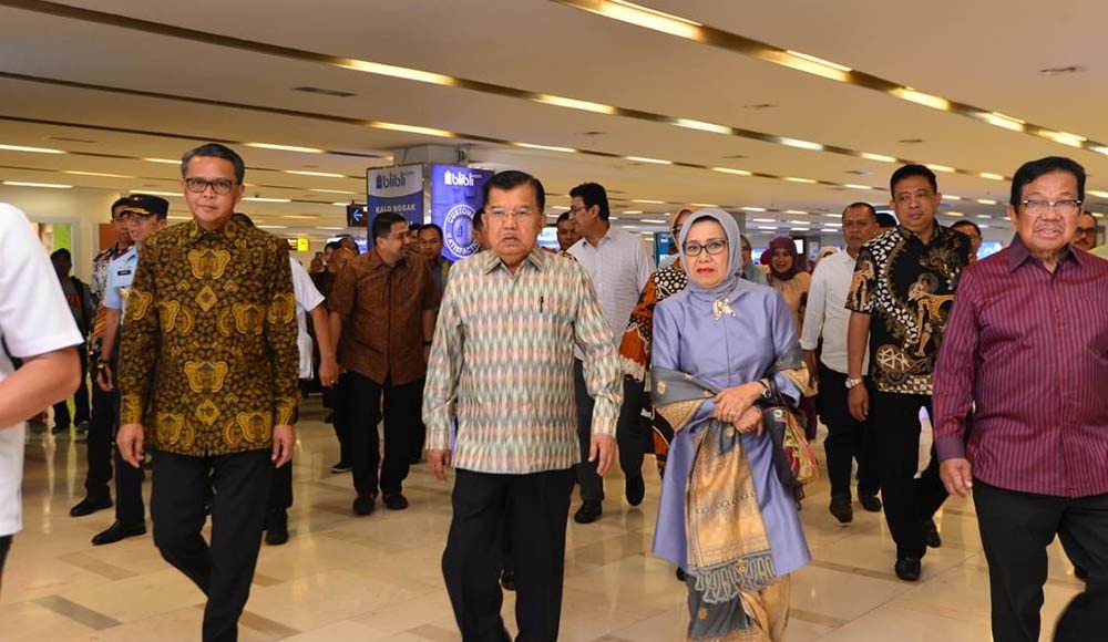 MAKASSAR- Gubernur Sulawesi Selatan, Prof. HM Nurdin Abdullah, menjemput mantan Wakil Presiden Jusuf Kalla (JK), di Bandara Sultan Hasanuddin, Maros, Sabtu pagi, 26 Oktober 2019.
