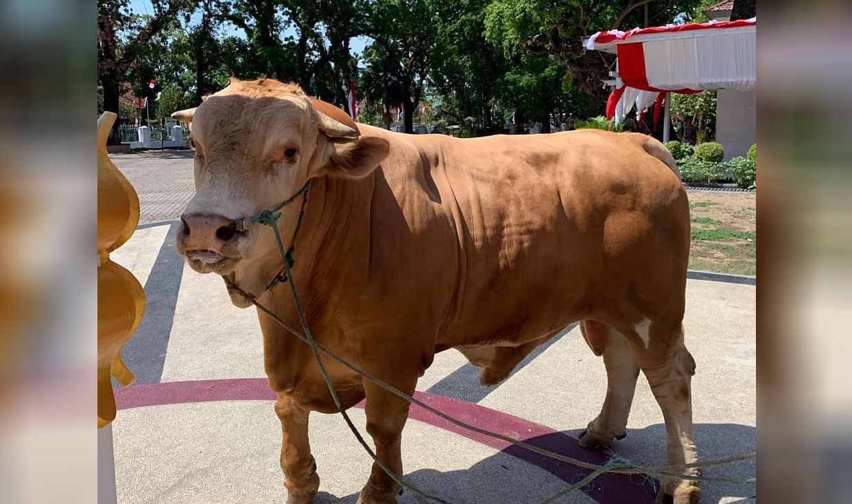 MAKASSAR – Sapi Dari Presiden republik indonesia Joko widodo seberat 1.200 kg yang sebelumnya diterima secara simbolis oleh Gubernur sulsel Nurdin Abdullah,dilapangan karebosi,telah dikurban di rumah jabatan Gubernur sulsel (11/8).