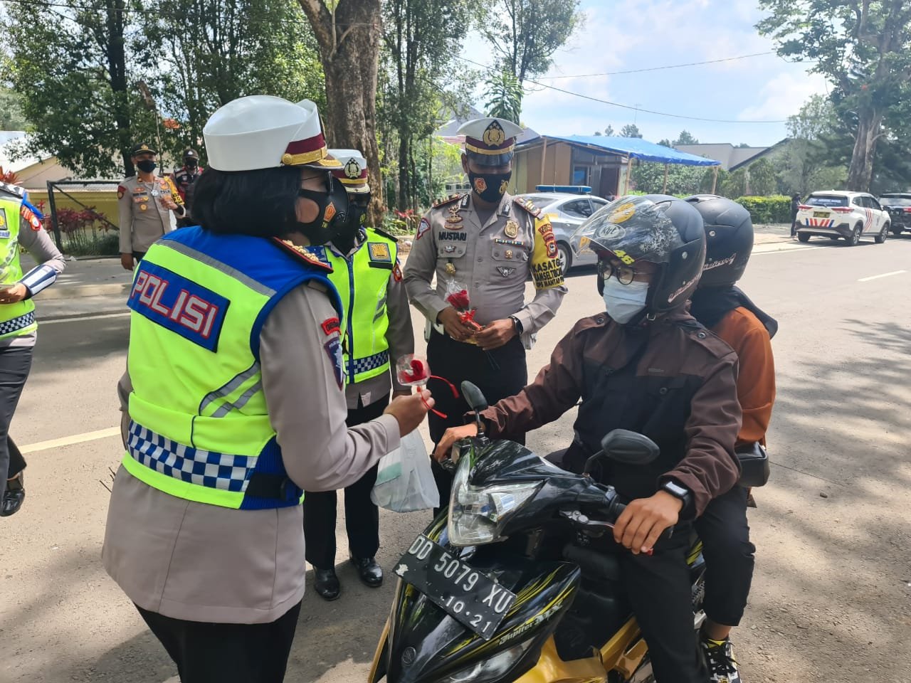 Dalam kegiatan yang turut Wadir Lantas Polda Sulsel, AKBP Soliyah S.IK, Kabag Bin Ops Dit Lantas Polda Sulsel, AKBP Suratmin, Kasat Lantas Polres Gowa, AKP Mustari SH, dan Para Perwira Sat Lantas Polres Gowa tersebut dilakukan pemberhentian kendaraaan baik roda dua (R2) maupun roda empat ( R4) yang melintas bukan untuk diperiksa surat surat kendaraan atau menindak dengan tilang, namun dilakukan pembagian bunga kepada para pengendara.