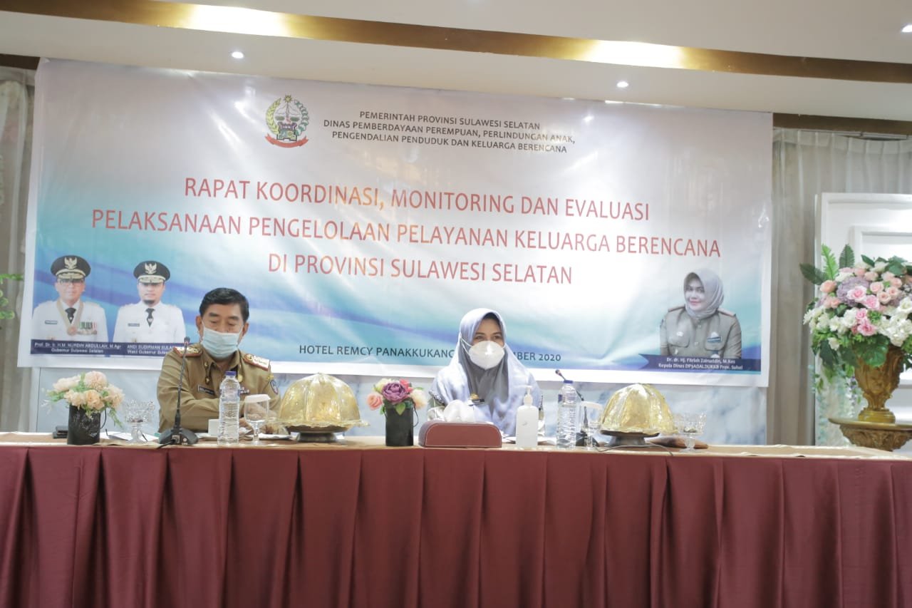 MAKASSAR – Sekretaris Daerah Provinsi Sulsel, Abdul Hayat Gani, Didampingi Kepala Dinas Pemberdayaan Perempuan, Perlindungan Anak, Pengendalian Penduduk dan Keluarga Berencana (DP3A Dalduk KB) Sulsel Dr.Fitriah Zainuddin membuka Rapat Koordinasi, Monitoring, dan Evaluasi Pelaksanaan Pengelolaan Pelayanan Keluarga Berencana di Sulsel, di Hotel Remcy, Selasa, 1 Desember 2020.