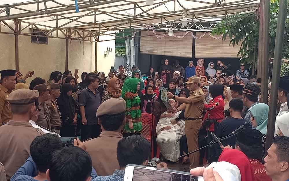 Upacara pelepasan jenazah almarhum Rahmat SE,; Mario Said Kadis perhubungan kota Makassar ditunjuk sebagai pemimpin upacara.