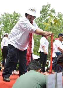 Sementara Kepala Dinas Kehutanan Provinsi Sulsel, Ir H Muhammad Tamzil MP IPU turut melakukan langsung penanaman Mangrove. (*)