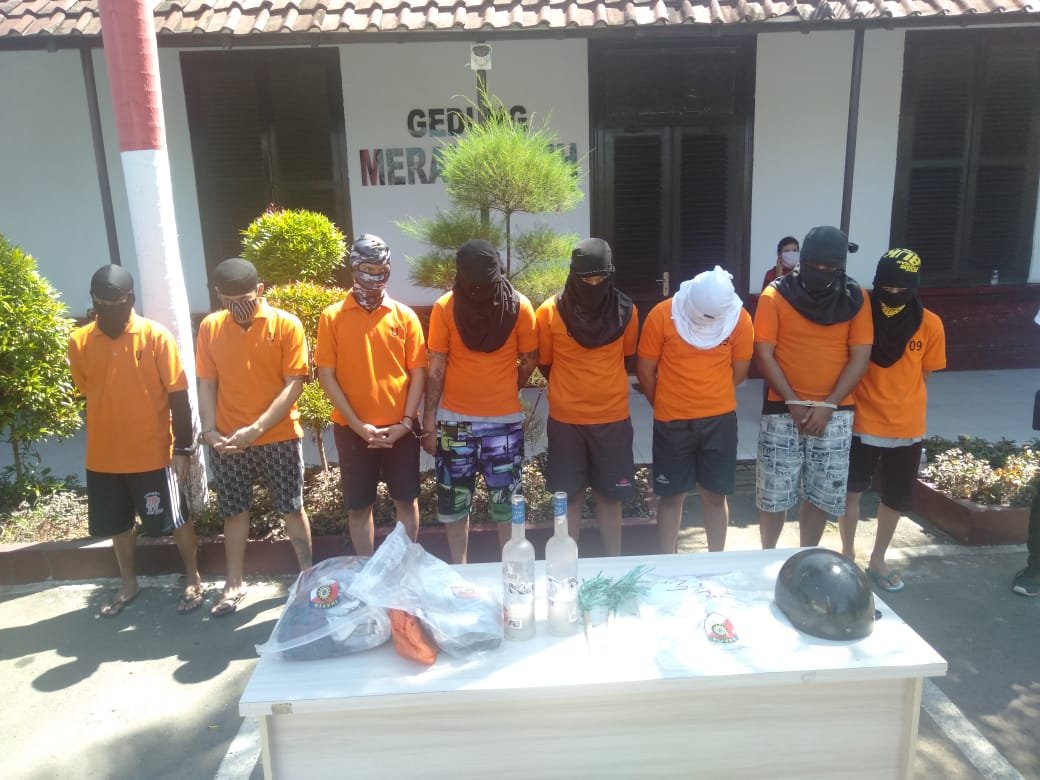 “Sejumlah barang bukti berhasil kami sita dari tangan ke-8 terduga tersangka, diantaranya 2 botol minuman beralkohol, 5 unit handphone berbagai merk, 2 buah tas selempang, 2 buah dompet, 4 unit sepeda motor,” tegas Jufri.