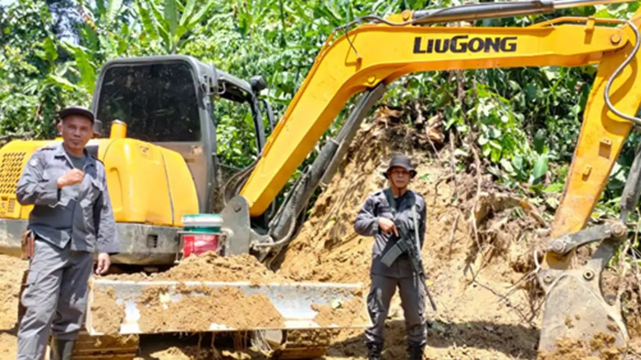 PALU—Tim operasi pengamanan kawasan hutan Balai Pengamanan dan Penegakan Hukum (Gakkum) Kementerian Lingkungan Hidup dan Kehutanan (KLHK) Wilayah Sulawesi bersama dengan Denpom XIII/2 Palu dan KPH Banawa Lalundu menemukan adanya 1 unit alat berat excavator merk Liu Gong didalam kawasan hutan produksi yang dapat dikonversi (HPK) di Wilayah Desa Tinauka, Kec. Rio Pakava, Kab. Donggala, Provinsi Sulawesi Tengah, Sabtu 28 Oktober 2023 yang baru lalu.