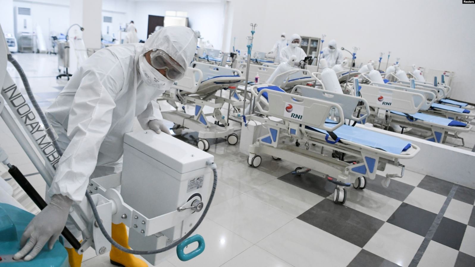 Seorang petugas medis mengecek peralatan medis di rumah sakit darurat untuk pasien COVID-19 di Wisma Atlet, Kemayoran. (Foto: Antara via Reuters)