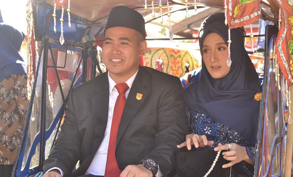 PANGKEP – Cara unik dan merakyat ditunjukan oleh Anggota Legislatif terpilih dari Partai Nasdem Pangkep, saat akan menghadiri pelantikan di Kantor DPRD Kabupaten Pangkajene dan Kepulauan, Rabu (28/8/2019)