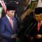 Pengucapan sumpah atau janji dilakukan secara bergantian. Presiden Jokowi mengucapkan sumpah atau janji lebih dulu di hadapan seluruh Pimpinan MPR.