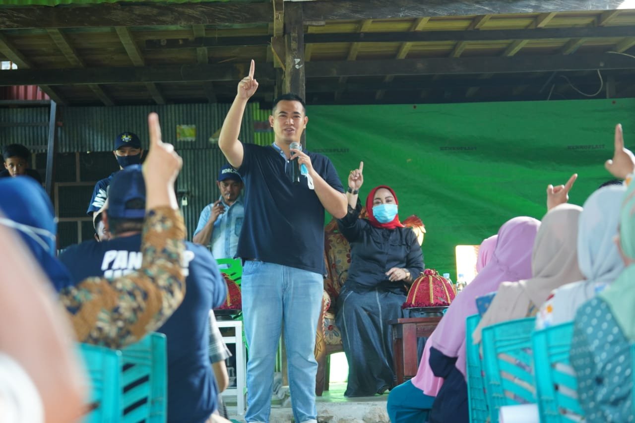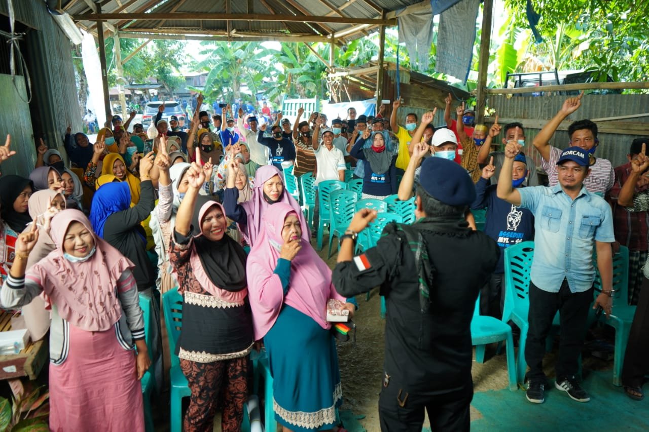PANGKEP – Calon Bupati Pangkep, Muhammad Yusran lalogau (MYL) menggelar kampanye tatap muka di Kampung Tuarang, Desa Panaikang, Kecamatan Minasatene, Kabupaten Pangkep, Selasa (17/11/2020).