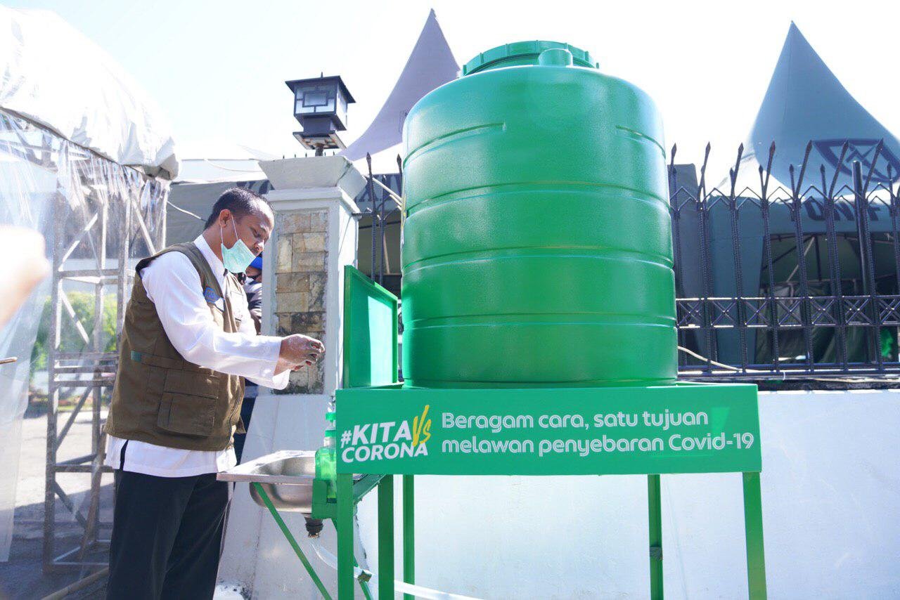 Pada kesempatan itu Wakil Gubernur Sulsel juga lansung mencoba Water Station dengan mencuci tangan.